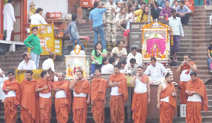 A sacred bathing spot on the bank of the river Ganga where devotees take holy dips and offer prayers. Devotees bathe here with the belief that the water has the power to purify them. Triveni Ghat is also called because it is believed to be the confluence of the Ganga, the Yamuna and the legendary Saraswati river. It is an interesting place to be at dawn when people make offerings of milk to the river and feed the fish. After sunset, as a part of the Aarti ceremony, lamps are floated on the water and provide a spectacular view.